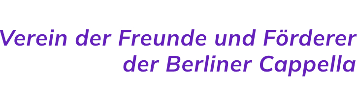 Der Verein der Freunde und Förderer der Berliner Cappella e.V. – kurz Förderverein – unterstützt die Berliner Cappella seit mehr als drei Jahrzehnten ideell und finanziell bei ihrer Chorarbeit.